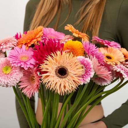 Der Muttertag ist der perfekte Anlass, um alle Mütter ins Rampenlicht zu rücken. Und was passt besser dazu als die vielseitige Gerbera? Von eleganten Gerponien und fröhlichen Germinis bis hin zu großblütigen Gerberas und kleinen, charmanten Germicros – es gibt immer eine Gerbera, die perfekt zu ihr passt. Und für alle, die etwas Verspieltes oder Eigenwilliges mögen, sind die funky Gerspiders und überraschenden Gerpastas ein echter Blickfang.